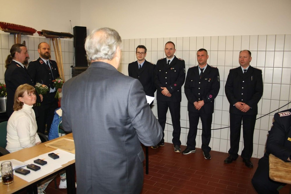 Grußworte überbrachten uns die Kameraden W.Sax, F.Ricklin, B.Krause sowie der Bürgemeister L.Herklotz, der im Anschluss die Kameraden für ihre 20,50 bzw. 60 jährige Mitgliedschafft in der FFW Frauenhain ehrte.